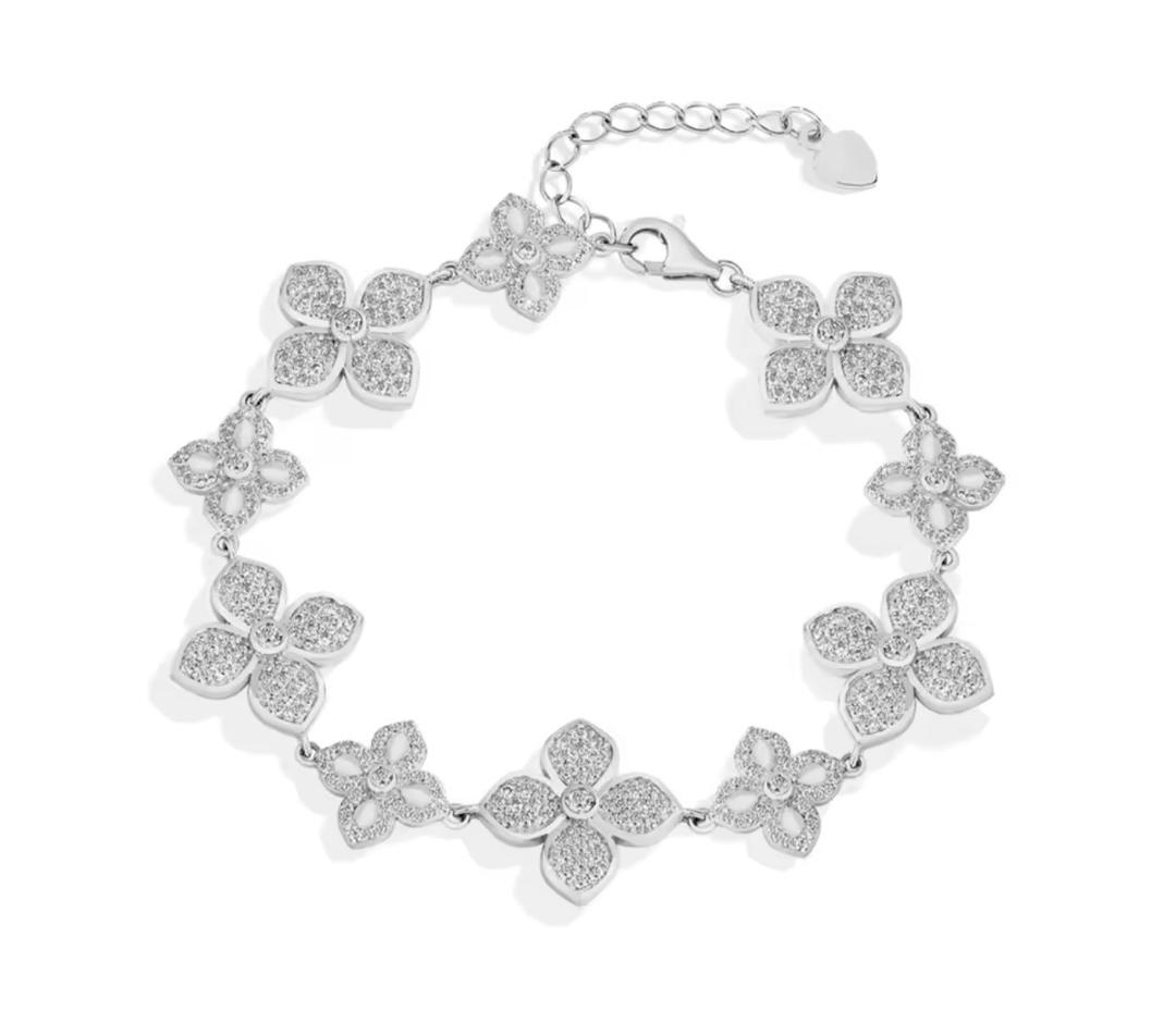 Delicate, feminine, and effortlessly elegant, the Flora Blossom Bracelet captures the beauty of blooming flowers in a timeless jewelry design. Featuring a sequence of sparkling floral motifs, each petal is adorned with brilliant stones that reflect light from every angle, creating a soft yet luxurious shimmer.