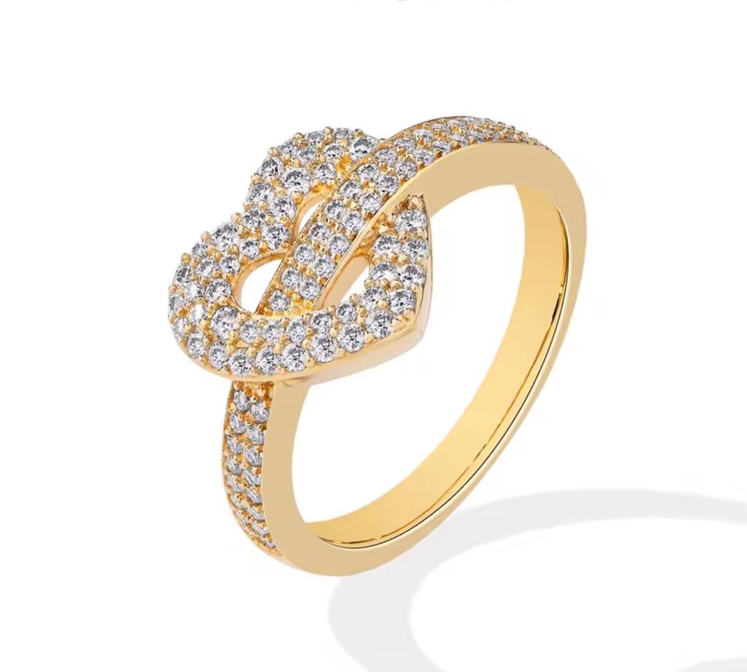 The Aurelia Intertwined Pavé Ring is a radiant symbol of elegance and unity. Crafted in luminous gold, this exquisite piece features two gracefully intertwined loops adorned with shimmering pavé-set stones that capture light from every angle.