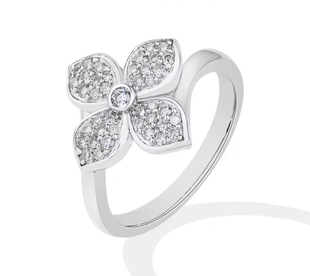 The Fleur Lumière Ring captures the beauty of a blooming flower frozen in a moment of brilliance. Designed with four delicately sculpted petals, each petal is adorned with shimmering pavé-set stones that sparkle like morning dew under sunlight.