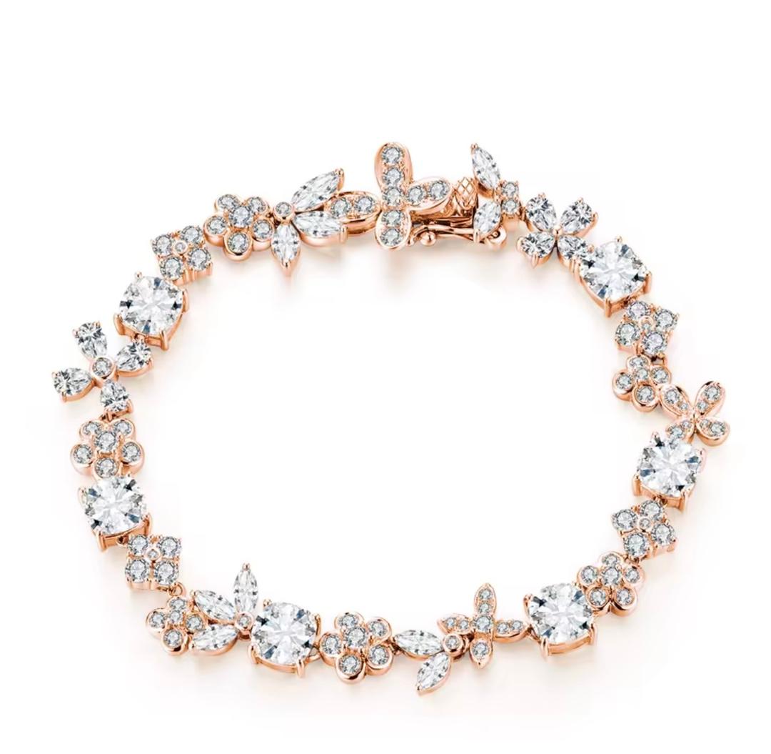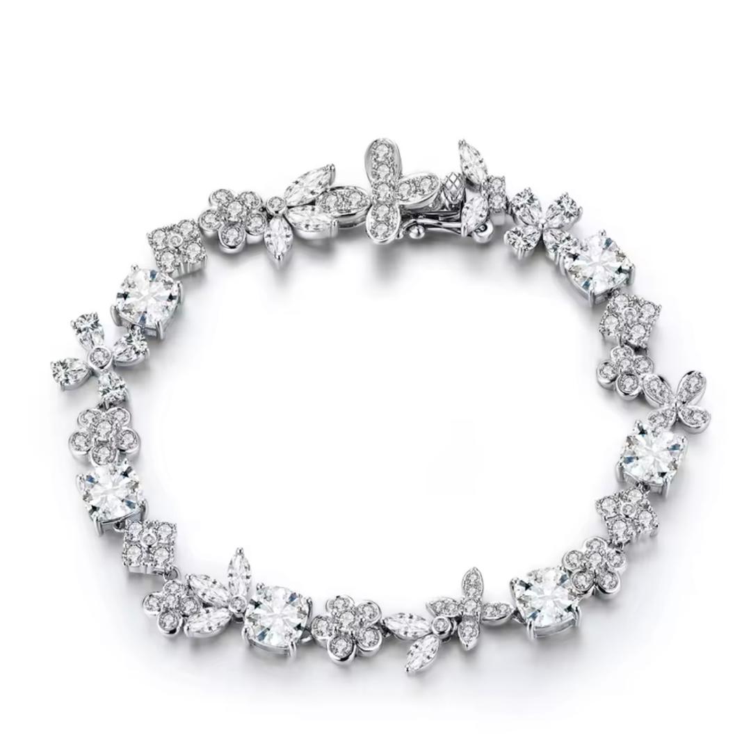 Delicate. Radiant. Unforgettable. The Jardin Éclat Bracelet is a celebration of elegance inspired by blooming florals and timeless brilliance. Designed with intricately arranged moissanite stones, each floral cluster and marquise detail creates a soft yet captivating sparkle that dances beautifully with every movement. At the heart of this piece lies a harmonious blend of round-cut center stones and petal like accents, forming a bracelet that feels both romantic and luxurious.
