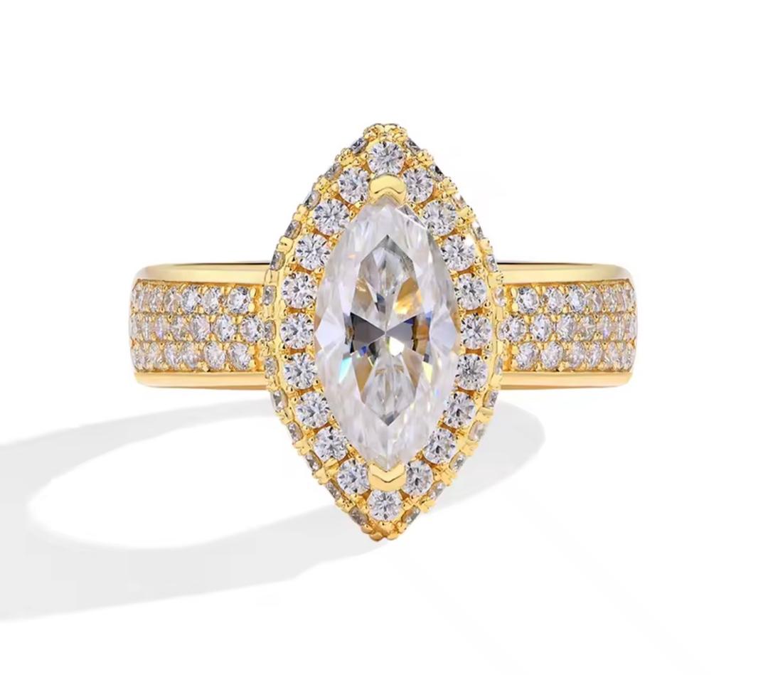 The Aurelia Petal Ring is a delicate celebration of beauty, inspired by the soft curves of blooming petals. Featuring a cluster of luminous stones arranged in a graceful floral silhouette, this ring captures the essence of elegance in its purest form.