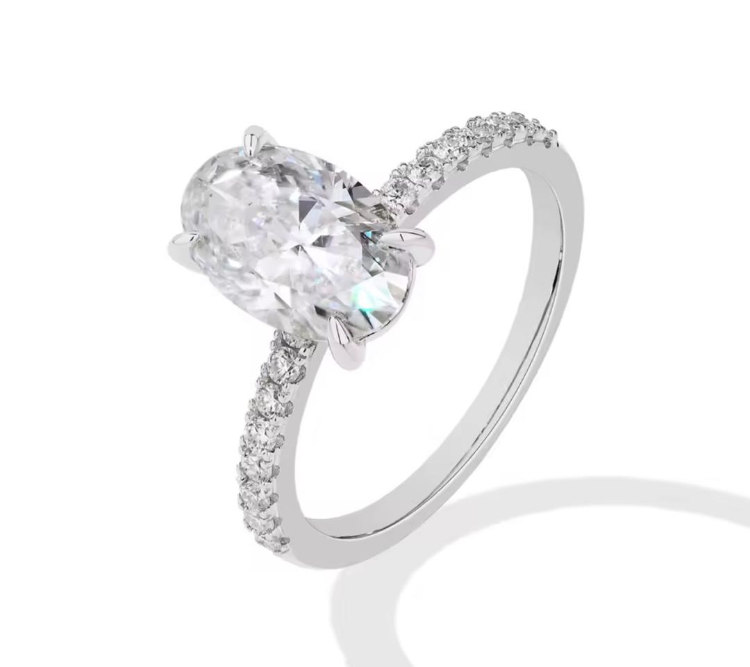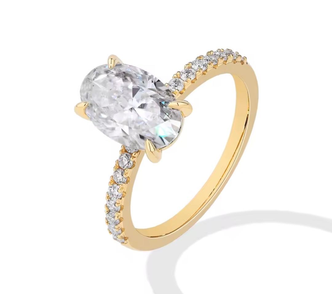 Inspired by the Kilba tradition of meaningful giving, the Shala ring represents the ultimate gift of devotion. This design reimagines the classic solitaire by adding a layer of intricate brilliance. The centerpiece a magnificent oval diamond serves as a focal point of clarity and "fire," symbolizing a love that is both transparent and enduring. The band is a study in precision, featuring a delicate, ultra-slim profile that emphasizes the size and scale of the center stone. Each accent diamond is pave-set into the yellow gold shank, ensuring that the ring glitters even in the lowest light.