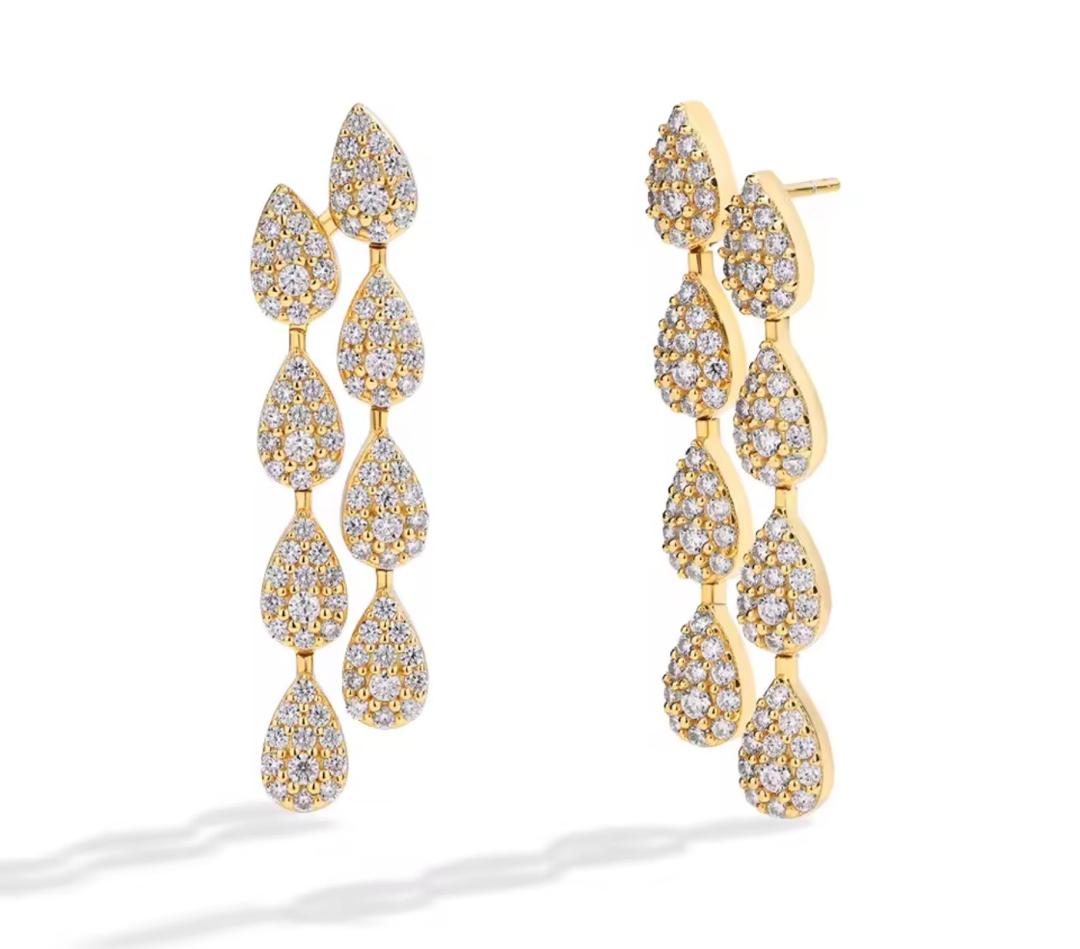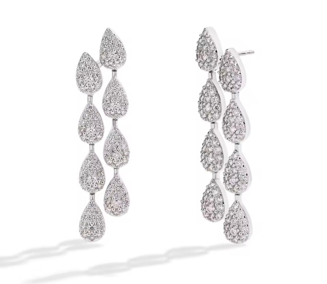 Inspired by the life-giving rains of the Nigerian savanna, the Dirmwa-Gala earrings are a poetic tribute to nature's most precious gift. These tiered dangles feature ten delicate teardrop motifs five on each side arranged in a cascading double-row that captures the light with every turn of the head. Each teardrop is meticulously pavé-set with brilliant diamonds, creating a shimmering effect that mimics the sparkle of fresh rain against the morning sun.
