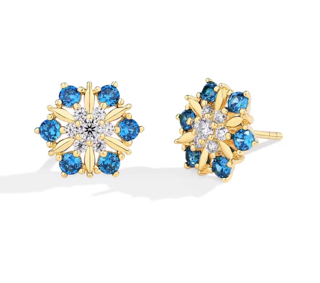 Capture the magic of the celestial sky with the Yidlang-Uta earrings. Taking their name from the Kilba words for star and sky, these studs use the contrast of deep blue and icy white stones to evoke a star-lit evening. The geometric precision of the gold settings provides an architectural edge, while the center cluster of moissanite delivers a concentrated burst of "fire." Whether you are looking for a unique bridal "something blue" or a signature statement of cultural pride, these earrings represent a love that is as vast as the horizon.