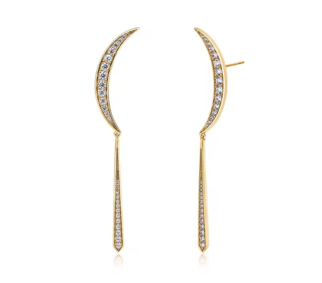 Channel the serene glow of a savanna night with the Hirm-Pyel earrings. Named for the Kilba word for moon, these earrings feature a graceful crescent arc that frames the ear, perfectly balanced by a sophisticated needle-drop pendant. Both elements are hand-set with premium moissanite, creating a continuous line of brilliance from the lobe to the jawline. Available in a luxurious 18k PVD gold finish, these earrings offer a celestial silhouette that is both ancient in its symbolism and avant-garde in its execution.